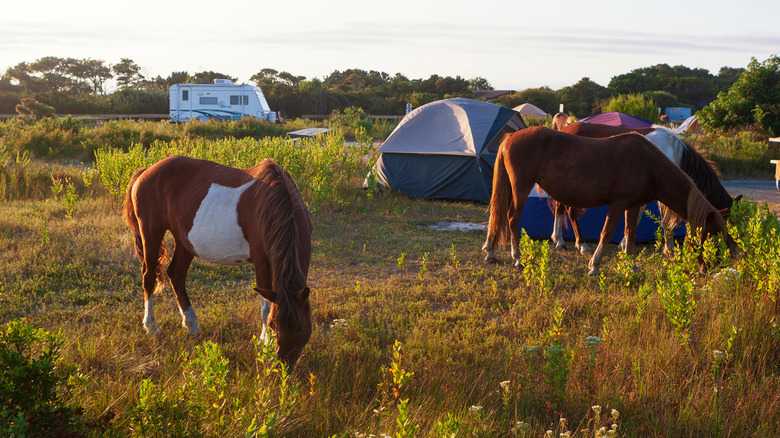 The ocean is never far away from any campsite, so you can easily go swimming, comb the beach, or just relax in the sand. If you've got a boat or kayak, you can also paddle around the island and set up camp at a number of backwoods camp sites that are only accessible by boat or foot. It's an amazing location with an equine feature that is truly unique to the area.