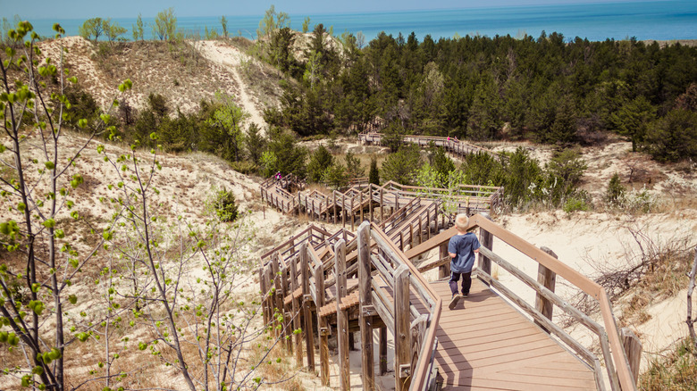 When you think of sand dunes in America, you're likely thinking of the dunes of the high desert, or the oceanside dunes on the coast. But did you know that some of the best sand dunes in the country can be found in Ron Swanson's homeland of Indiana? Part of the state's small, but dramatic, 45 mile coastline along Lake Michigan, Dunewood Campground is settled at Indiana Dunes National Park, which offers an amazing 15 miles of sand dune-covered shoreline.