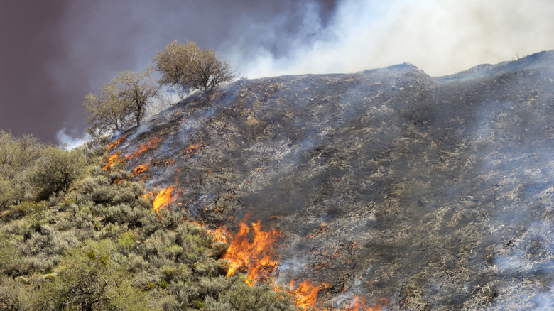 It's helpful to understand how a wildfire progresses so that you can be prepared if you see one that is developing near the area where you're hiking. As Forbes reveals, fire can travel close to 6 mph in forests, and it moves more than double that speed on the grasslands. The embers from the flames can also travel great distances in the wind, sparking additional fires, which can even cross roads or bodies of water. These small fires are indicators that a larger fire is on the horizon, so be aware of these danger signs.