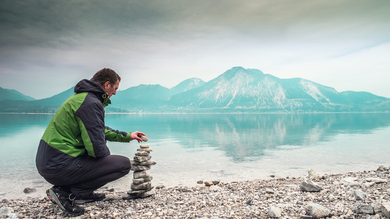 Although it has become rather popular today, building rock towers — often called cairns — is also against the rules in many national and state parks. This is because cairns, although pretty, damage the environment. In a similar vein, it's also important not to take any souvenirs like rocks, soil, flowers, and other natural items out of parks. This is because, while one rock may not make a difference, when many people take items it can have a detrimental impact on the environment and ecosystem of the area.