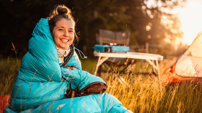 In addition to the temperature limits of a bag, consider choosing a mummy-style bag. The mummy-style sleeping bag is the epitome of efficient warmth retention (via Koa). Its tapered design, snug hood, and contoured shape closely follow the contours of your body, minimizing open spaces where warmth could escape. Embracing you like a second skin, a mummy-style bag is a fortress against the cold. The hood cinches tightly around your head, trapping heat. The reduced interior volume means your body heat quickly warms the surrounding air, creating a microclimate of comfort. In the embrace of a mummy-style sleeping bag, the cold of the night is transformed into a distant memory as you revel in the warmth of your insulated cocoon.