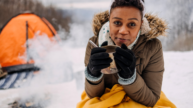 Inside your tent, your tent's walls, though protective, can benefit greatly from an extra layer of insulation. Thermal liners strategically placed along the interior can transform your tent into a cocoon of warmth (via Camping World). By affixing insulating materials to the walls, you create pockets of trapped air — nature's best insulator. This acts as a buffer against external temperatures, preventing the cold from permeating your sanctuary.