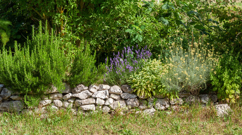 Lavender, with its fragrant spikes of blossoms and silvery foliage, stands out as another drought-tolerant wonder in the herb garden. Renowned for its resilience in hot and dry conditions, lavender thrives in well-drained, sandy soils and revels in full sunlight. What makes lavender a true marvel in water-wise gardening is its ability to withstand drought once established (via Garden Design), making it a perfect choice for gardens where water conservation is paramount. The aromatic oils within its leaves and flowers contribute not only to its iconic scent but also to its ability to endure periods of limited water availability. Lavender's enduring beauty and adaptability make it a standout choice for herb gardens in regions where the call for drought-tolerant wonders is particularly resonant.