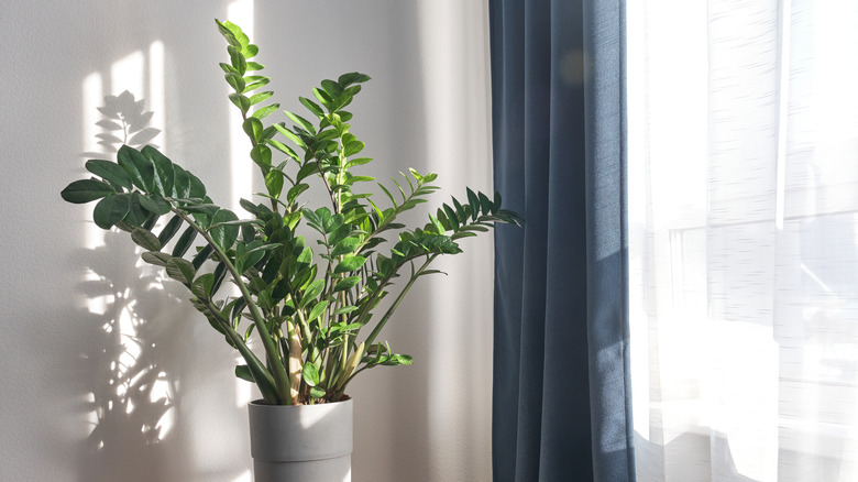 The ZZ plant, scientifically known as Zamioculcas zamiifolia, emerges as an undisputed champion in the realm of resilient houseplants, making it an ideal choice for gardening beginners. Its exceptional ease of growth lies in its adaptability to a variety of environmental conditions (via Gardeners' World). This hardy plant is renowned for its tolerance to low light levels, allowing it to thrive in spaces where other plants might struggle. Moreover, the ZZ plant is forgiving when it comes to watering, as it can withstand infrequent hydration, making it perfect for those still mastering the art of plant care.