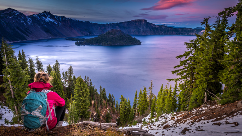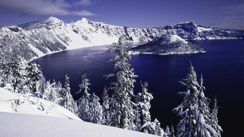 One important thing to know about Crater Lake National Park is that its high elevation and location at the top of the mountain mean it gets plenty of snow. In fact, according to the NPS, Crater Lake is one of the "snowiest inhabited places in the USA." Because of this, the Rim Drive loop is only open to cars in the summer, and even that depends on day-to-day conditions on the mountain. However, despite the heavy snowfall, the national park stays open year-round and simply embraces its snow-covered alpine terrain. If you like winter sports, Crater Lake is the place to go because, from autumn to spring, the Rim Drive becomes a popular spot for skiing, snowshoeing, and snowmobile riding.