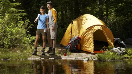 One of the greatest joys of exploring the outdoors is getting to experience nature firsthand, but that can mean getting up close and personal with creatures in their natural ecosystems. That might mean being delighted by seeing a brilliant green dragonfly perched on your tentpole, but it could also mean being bitten by mosquitos so that they can use your blood to breed a new generation. Unless you're camping by a lake or pond to get a first-hand understanding of the life cycle of the insects in your region, you may want to move your campsite back a little from the shore. When camping in a damp area, you should always try to find a campsite with a slight incline to avoid stagnant pools of water bringing the insects right to you. If you're lucky enough to be able to find a campsite significantly higher than the water, you may be able to enjoy both a staggering view of the sunrise over the water and a little less itching.