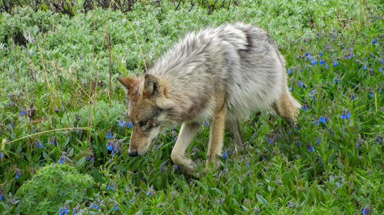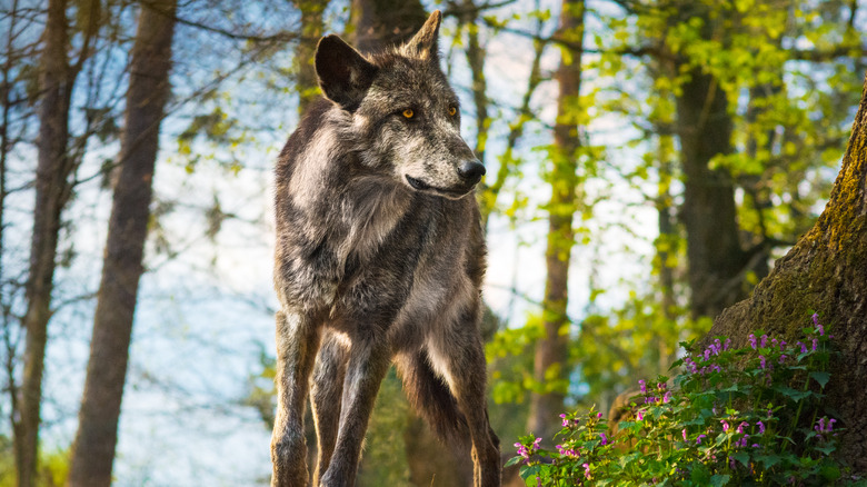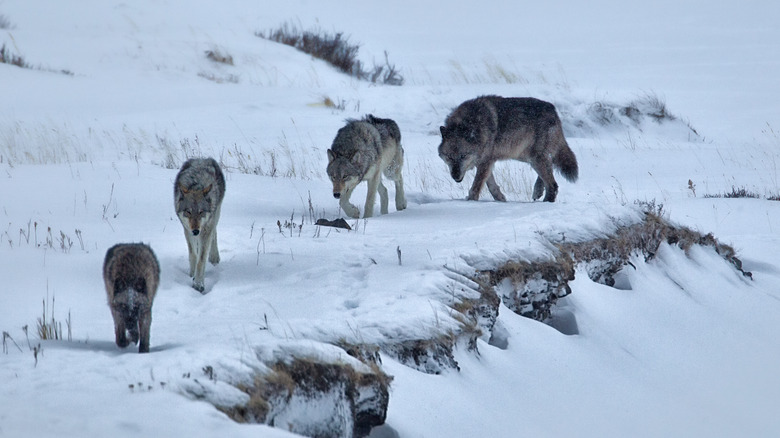 Locking eyes with a wolf or suddenly coming upon a pack while in the wilderness could certainly be a frightening experience, but you should resist the impulse to run away. Generally, wolves are afraid of people, and after staring at you for a while they will run off in the opposite direction. You should not. As stated by wolf expert Oliver Starr (via Business Insider) wolves are what is known as coursing predators, which means that they hunt by chasing after and taking down prey that is running – typically creatures like deer, moose, elk, caribou and musk oxen. Not only are they able to take down running prey, that's the way they know how to hunt. Before attacking a wild animal, a wolf will try to spook it so that it runs away. Even though wolves do not usually view humans as food, you should not behave like their prey.