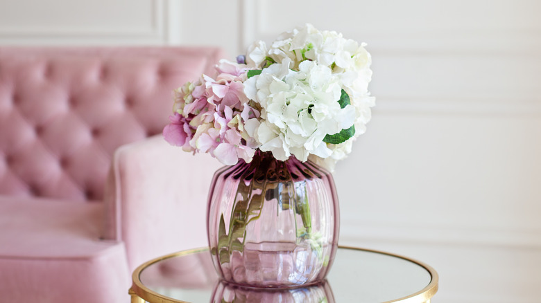 How you use alum powder to help your hydrangeas flourish may be slightly surprising because you can't just simply add the powder to the water like you would with flower food. Instead, as outlined by a florist on Reddit, you should cut the stems at an angle to provide more surface area for the flower to drink from and then you can dip the cut side of the stems in the alum powder before placing the flowers in a water-filled vase.