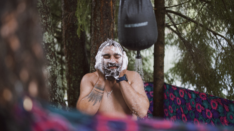 Some may even create a makeshift shower area in the woods. If you are, be sure to choose a location that will allow for easy dispersion of water. Be mindful of the time spent bathing and the distance from water sources. Prolonged bathing in one spot can lead to soil erosion, so it's essential to limit the duration and spread the impact over a larger area. With this method, it's also important to minimize the use of soap as soap could harm the balance of the nearby ecosystem. Alternatively, consider soap-less showers or biodegradable soap, especially when bathing in pristine areas where soap residues might have a more noticeable impact.