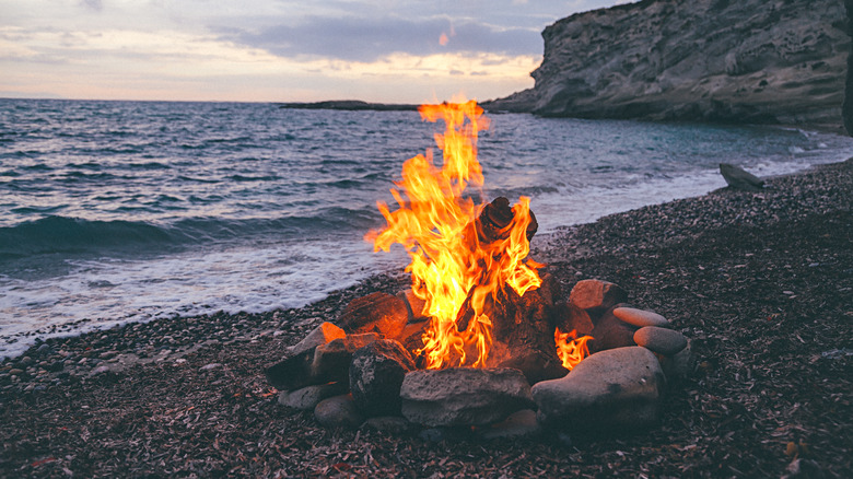 The first step in using stones to preheat your sleeping bag is to find the right rocks. You can choose either one large stone or multiple smaller stones but, either way, you are looking for rocks with smooth surfaces and edges. This is important because smooth rocks are less likely to damage your sleeping bag. It's also a good idea to use a rock that is relatively clean and not too heavy. Once you have your rock, go ahead and set it next to the fire to start heating it. You don't want to put it in the fire because it will get too warm, but it should be hot to the touch while not burning you.