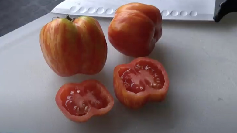Juicy and flavorful homegrown tomatoes are a great addition to both your kitchen and garden. However, while tomatoes are often cited as a relatively easy-to-grow plant, they can suffer from a few common ailments from yellow leaves to cracked skin and fungal infections. While you may have successfully solved a few of these tomato problems before, one problem you may not have expected to face is cutting into a perfect-looking tomato only to find that it's hollow on the inside. Hollow — or puffy — tomatoes occur when there are empty spaces between the seed clusters and the outer fruit of the tomato. This means that your hollow tomato will be less juicy and all around not as good when compared to a normal healthy tomato.