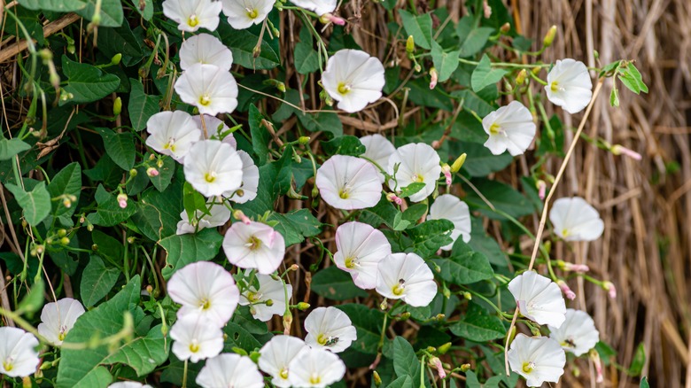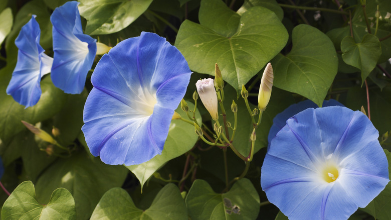 To control the spread of these blossoms, Bob Vila suggests planting morning glory in containers or pots to restrict its growth and prevent the spread of its roots. This approach allows for easy control over its climbing tendencies and provides mobility. Implement a consistent pruning routine to keep morning glory in check. Regularly trimming back the vines helps prevent overgrowth and minimizes the risk of structural damage. Encourage morning glory to climb on trellises or arbors strategically placed away from structures. This not only adds vertical interest but also directs its growth in a controlled manner.