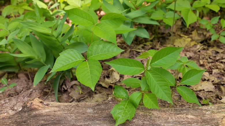 The most notorious characteristic of poison ivy is its production of urushiol, an oil that induces severe allergic reactions in many people (via Mayo Clinic). Even the slightest contact with any part of the plant — leaves, stems, or roots — can result in skin irritation, rashes, and discomfort. The severity of the reaction varies from person to person, making it a substantial health risk. Poison ivy is not only hazardous upon direct contact but also possesses an alarming ability to spread rapidly. Its vines can climb walls, fences, and trees, infiltrating neighboring spaces and potentially causing exposure to unsuspecting passersby.