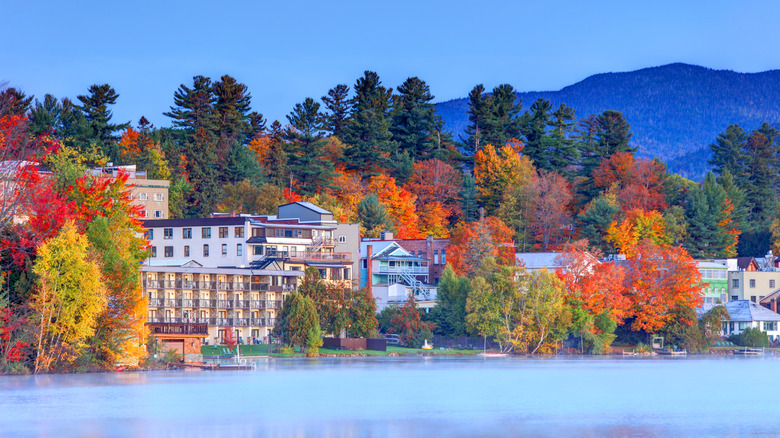 The town is surrounded by five of the greatest views the Adirondacks have to offer. Take hikes up Cobble Lookout, Baxter Mountain, Pitchoff Mountain, Heaven Hill, and Whiteface Landing. Each climb provides stunning walks for every level of hiker. Some of the best views can be taken during autumn when the mountains are alive with the vibrancy of the changing leaves. Wintertime activities in the hills include cross-country and downhill skiing on Whiteface Mountain, dog sled rides on the frozen lake, and zooming down the bobsled run at the Olympic Complex.
