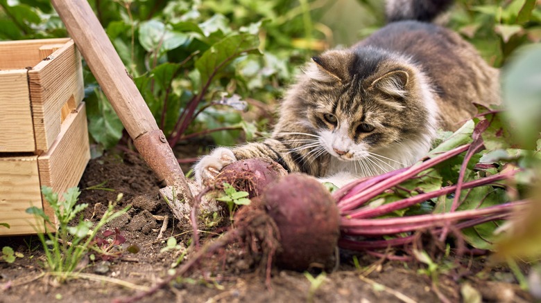 On top of this, outdoor cats can do even more damage to your garden when they decide to make it their personal playpen or, worse, their litter box. While a cat using your garden as a toilet doesn't mean you can't eat your vegetables come fall, cat excrement does contain germs that can make humans sick. Because of this, you will want to make sure to wash your vegetables (especially the leafy green brassicas) thoroughly before consuming them if a cat has been active in your garden.