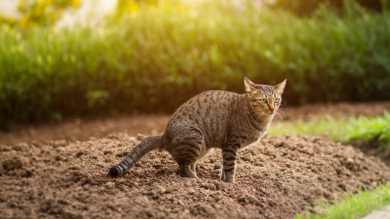 Cats have soft pads on the bottom of their paws and tend to prefer walking on comfortable and soft surfaces like dirt and grass. So, one way you can try and deter cats from spending time in your garden is to make the ground spiky and uncomfortable. There are a few ways of doing this which are recommended on many gardening websites. However, when tested by Epic Gardening, it was found that certain methods like eggshells, chopsticks, plastic forks, and pointy sticks don't really work. In fact, when the fork and chopstick method was tested, the cats simply pushed the upright utensils aside and did their thing anyway.