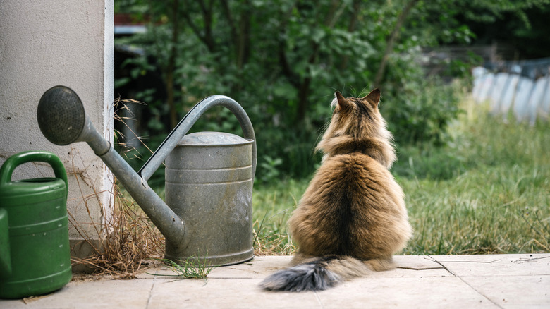 If you want to keep your garden tidy and don't like the look of discarded orange peels all over the place, an alternative option is to invest in a motion-activated device. As cats hate water even more than they hate citrus, a motion-activated sprinkler is a great option. These sprinklers not only scare cats away but also help them associate your garden with a negative experience to keep them from coming back, all while benefiting your vegetables and flowers with extra hydration. However, if you live in an area that often experiences droughts and water bans, sprinklers may not be the best option.