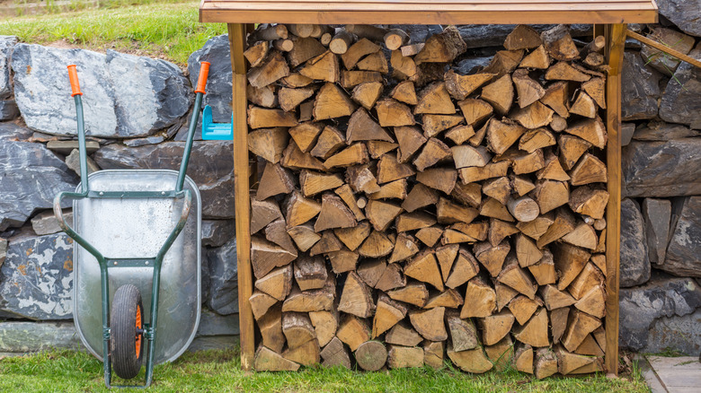 Luckily for all bonfire enjoyers, the threat of brown recluse spiders doesn't necessarily mean you have to never enjoy s'mores again and get rid of your woodpile altogether. Instead, the first thing you should do is make sure your firewood is not stacked directly against your house. This is important because, as Yale Pest notes, if you make the area next to your home an attractive environment for brown recluse spiders, "it's easy for them to find cracks or gaps where they could enter."