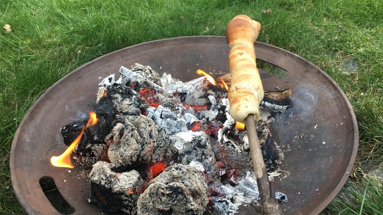 If you are going the chili or soup route for the main course, a classic side dish is a piece of buttered bread. While you can always buy bread from the store and bring it with you, another option that is also a fun activity for kids is to make stick bread. Stick bread is a German campfire tradition (like S'mores in the U.S.) and is done by making a bread dough beforehand and bringing it with you to the campsite in a sealable bag or container. Then, simply roll out the raw dough into long strands, wrap them around the end of a stick or skewer, and cook it over the fire.