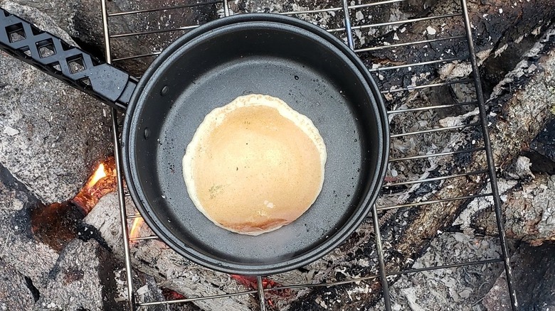 However, it is important to know that this camping meal-prep method doesn't only work for broth-based foods like soup and chili but can also work for a whole host of other delicious meals. Another great pre-cooked campfire meal option is pancakes because they can be made before you leave, stored, and then reheated the next morning over a fire for a wholesome breakfast. A great lunch option is toasted sandwiches and cheese melts. Simply assemble the sandwich and bring it with you, then toast it on a pan over the fire until the cheese is nice and gooey.