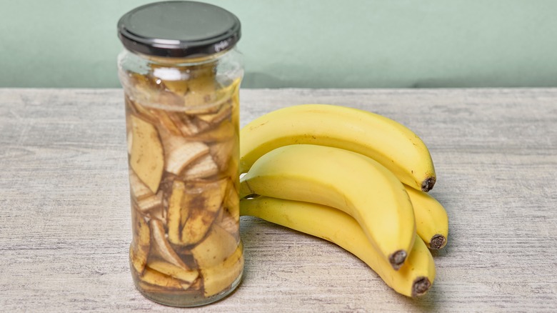 While it does take some time, fermenting vinegar for plants is quite easy. Simply start with a mason jar filled with your chopped leftover banana peels. Then, fill the jar with water until it fully covers the peels, and cover the jar with a cheesecloth. Next, let the jar sit in a warm place for around one week as it begins to ferment. After a week, go ahead and remove the banana peels and let the leftover liquid continue fermenting in the mason jar for another month. When the mixture smells like vinegar, it's done and is ready to be diluted and added to your plants.