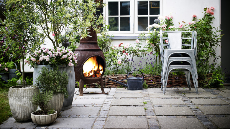 This method should lift most dirt and grime from your patio, but to remove stubborn stains, you may have to add the warm, soapy water mixture again and then scrub the area with a synthetic-bristled brush. It's important not to use a metal wire brush as this can damage the surface of the concrete. If you want to save yourself from some backbreaking scrubbing, you can also opt to use a push broom. Once this is complete, you should let your patio dry completely before moving your furniture back in place. Otherwise, you may create rust stains.