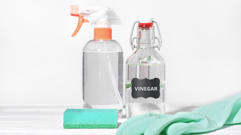 If you have some extra resilient stains on your patio, you may need to turn to another household item that is a little stronger than dish soap — vinegar. Specifically, you should buy white vinegar that is specially made for cleaning. This type of vinegar can be found at most home improvement stores and is stronger than the normal cooking vinegar you'll find at the grocery store. The best thing about this method is that white vinegar is capable of removing stubborn old rust stains along with dirt and grime.