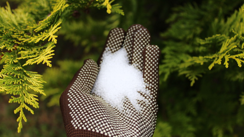 Keeping your lawn healthy and green can take a lot of trial and error with testing out watering schedules and different fertilizers. However, if you want to give your lawn a little extra boost without breaking the bank, you can always turn to Epsom salt. Epsom salt, despite its name, is not actually a salt and is instead a naturally forming mineral made from magnesium and sulfate. Because there is no salt in Epsom salt, it is completely safe to use in your yard or garden. It can even be beneficial, as magnesium is an essential component in creating chlorophyll, which is what gives grass its green color, per the University of Florida.
