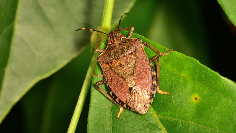 Brown marmorated stinkbugs, with their camouflaged bodies and innocent beetle-like appearance, may not raise any alarm bells when you first start seeing them in the garden. However, as you begin to see more of them and notice your garden vegetables begin to suffer, you will probably start putting two and two together. In fact, despite looking very docile and being harmless to humans, marmorated stinkbugs are an invasive pest (via the EPA) and can cause all kinds of havoc by using their long tube-like mouths to pierce into your plants and suck them dry. Unfortunately, with stinkbugs, you can't just squish them because they release a foul-smelling chemical odor as a natural defense mechanism (hence the name).
