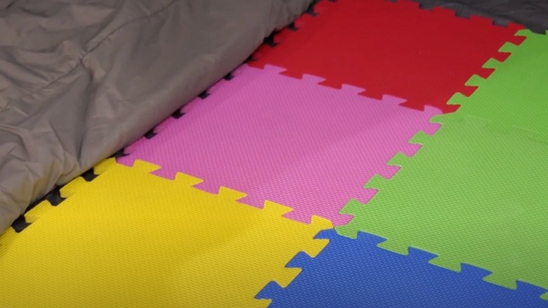 While adding foam puzzle pieces to a tent to make for an ultra-comfortable camping experience seems like it would be pretty simple, there are actually two methods of doing it. The first, as seen in a Reddit post on the camping gear forum of the website, involves laying the foam pieces directly on the ground and then setting up your tent on top of them. With this method, the foam puzzle pieces act as a tarp and protect your tent from any rocks or sticks while also adding an extra layer of comfort. However, as pointed out by one commenter on the same post, this may not be the best method if rain is in the forecast because the foam mats will likely get wet and may even cause water to seep into your tent.