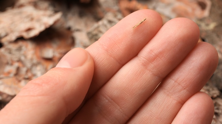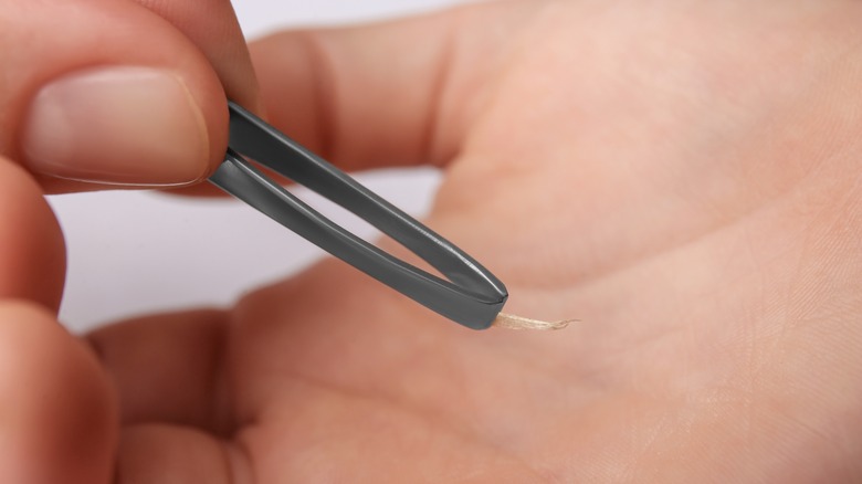 While many of us might instinctively try to remove the splinter with our hands, Dr. Alan Greene advises against this (via Mount Sinai). Our fingers, no matter how dainty, could push the splinter deeper into the skin. Instead, if the splinter is lying flat against the skin, use a pin or needle to lift it slightly. Once there's enough length to grip, use tweezers to grasp the splinter and pull it out in the same direction it entered. Avoid using too much pressure, as this could break the splinter, making it harder to remove. If you're unable to remove the splinter or if the area becomes infected, it's important to seek medical attention. A healthcare professional can safely remove the splinter and may prescribe antibiotics if necessary.