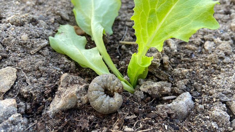 Cutworms (like many others on this list) are technically caterpillars and not worms, but their shiny bodies and brown coloring can make them look more like worms to the untrained eye. Cutworm is a generic term for a large variety of caterpillar species that later become different types of brown moths. These critters, while smaller and more innocent-looking than hornworms and grub worms, can easily cause more damage because they wrap themselves around the stem of a plant and then chew through it. When a cutworm eats through the base of a plant, it often causes the entire plant to die, leaving you without a harvest. Cutworms like to attack young plants and enjoy eating a wide variety of flowers, fruits, and vegetables. They also tend to come out to feed at night, which means you may not even know they are there until it's too late.