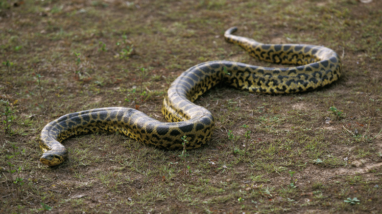 Anacondas are ambush predators, lying in wait for prey to pass by before striking with lightning speed. Once within striking range, they use their muscular bodies to wrap around their prey and squeeze tightly, preventing escape. Their massive size and strength enable them to overpower prey as large and as violent as caimans. If you encounter an anaconda in the wild, it's crucial to remain calm and avoid startling or provoking the snake. Back away slowly and give the anaconda space to retreat. Attempting to handle or capture the snake is not advisable and can lead to dangerous consequences for both you and the anaconda.