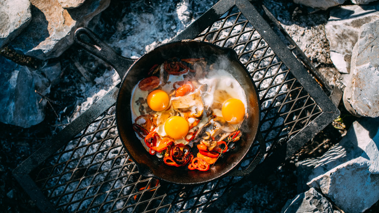 While camping, nothing tastes better than a hot meal cooked over the fire — especially after a long day of fishing, hiking, or swimming. However, cooking over a campfire comes with challenges, whether that's trying to figure out the best way to start the fire in the first place or how long to cook your food. The latter can be especially challenging because cooking a meal outdoors over an open flame typically takes more time than it would to cook the same meal on your stove at home. Luckily, there's one tool that can speed up the outdoor cooking process — a lid.