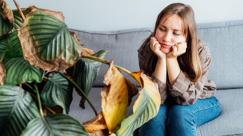 When using baking soda and dish soap as a protection against fungal disease, it is important to know that applying it incorrectly could cause further damage. In fact, as discovered by one Redditor on the gardening forum of the website, if you don't add enough water to the mixture it can burn your plants. In this case, the Redditor accidentally added one quart of water instead of one gallon and ended up turning their plants brown. To prevent burns, you will also want to try and apply the mixture on a cloudy day. If you are worried about the effect the baking soda will have on a specific plant, you can first test it on a few leaves before coating the entire thing.