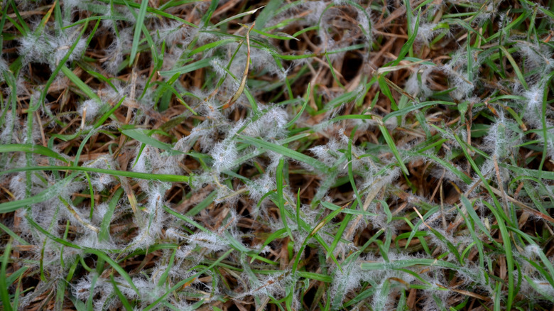 In addition to hiding unwanted guests, longer grass blades and debris also shade the soil beneath them, reducing evaporation and increasing soil moisture levels. This has the potential to create a damp environment that's ideal for the development of fungal diseases, such as mold and mildew. Fungi thrive in moist conditions and can quickly spread throughout the grass, causing widespread damage. Overgrown grass that's littered with other organic matter can also restrict airflow near the soil surface, leading to poor ventilation and stagnant air pockets. This lack of circulation exacerbates a humid microclimate that favors the growth of fungal spores and other pathogens.