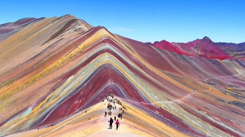 As the name suggests, Rainbow Mountain is renowned for its vibrant hues in the form of colorful striations akin to a rainbow. These striped patterns are thought to have formed by mineral deposits over millions of years. Layers of iron oxide, copper sulfate, and sulfur have painted the mountain in shades of red, orange, yellow, green, and turquoise, creating a stunning display that rivals even the most vibrant of rainbows. When the formations first revealed themselves, Vinicunca was kept secret from the local Quechua communities. However, as word spread of this natural wonder, Rainbow Mountain quickly gained international attention. What was once a well-kept secret is now a bucket-list destination for adventurous travelers seeking the awe-inspiring beauty of nature.