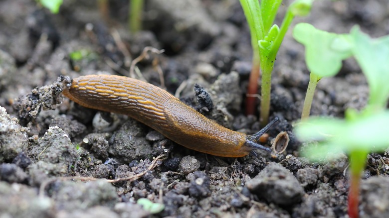 After a rainfall, it is wise to inspect your garden for these slimy creatures. While they are important aspects of natural ecosystem balance, too many of them can cause widespread destruction to foliage, flowers, and young seedlings. Look for telltale signs like slime trails on plants, pots, and other garden structures you've installed. Try to remove any boards, rocks, or dense vegetation that can provide dark, damp shelter for them. Using gloves, pick them off plants and relocate them away from your garden. You can keep them in a bucket of soapy water to transport them.