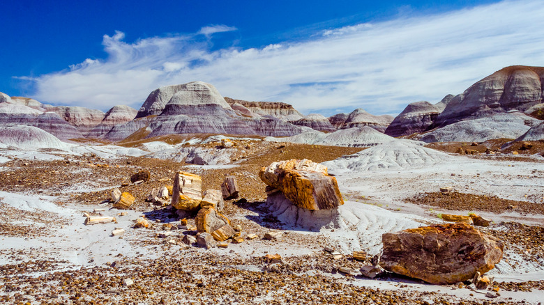 Although dogs aren't allowed to explore off-trail in the Petrified Forest, neither are humans, as walking through this unique environment can damage the fragile grassland ecosystem. In order to protect the environment as much as possible during your time in the park, rangers ask that you keep your furry friend on a leash and prevent him or her from interacting with or chasing any wildlife.