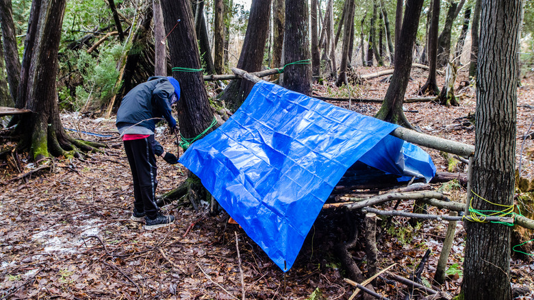 Getting stuck in a storm while you're headed back to your tent is never fun. What makes things worse is if that storm leaves you stranded or is too intense to continue on through. It's times like these when looking for shelter is going to be extremely stressful. So, it's always a good thing to have a vinyl tarp and rope handy. With both, you can have a halfway decent shelter ready within a few minutes.