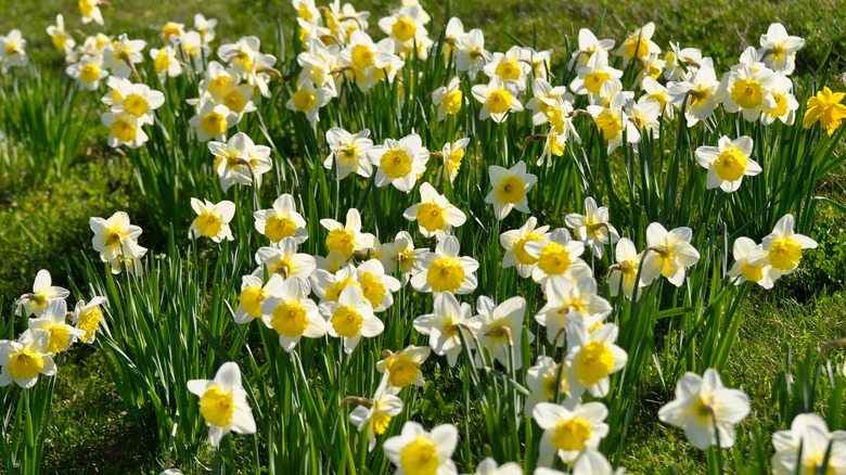 As it turns out, the best way to deter moles with daffodils is to create a barrier of flowers around your garden or yard. This involves planting the flowers in a fence-like perimeter around the area you'd like to protect. This way the mole won't simply be able to tunnel around the toxic bulbs and will need to choose somewhere else to go. The best thing about this solution is that daffodils are perennials meaning that they come back every year and you won't need to annually replant your mole-defense line. Furthermore, these beautiful flowers are quick-growing and are often some of the first flowers to pop up in spring — one of the times when moles are most active.