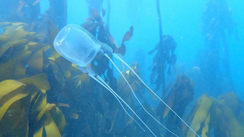 The box-within-a-box (BWB) jellyfish is an enigmatic creature that often gets lumped into the same pool as its harmful cousin, the box jellyfish. The BWB is distinguished by its shape, which is unique among jellyfish. It's almost square and has multiple layers, which make it look as though it is constructed out of boxes stacked on top of one another. As a member of the box jellyfish family, the damage one of these creatures can do is pretty significant.