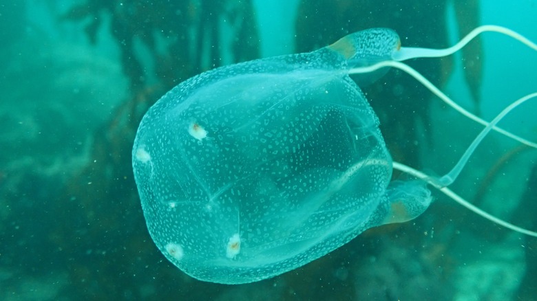 Box jellyfish are one of the most dangerous types of jellyfish in the Pacific Ocean. The reason for this is that, unlike most jellyfish, box jellyfish can see and can also swim after prey instead of simply floating on the surface of the water with the currents like most jellies. On top of this, box jellies deliver a painful sting from long-reaching tentacles that are covered in tiny barbs loaded with poison. While certain types of box jellyfish can be deadly, the good news is that the species of box jellyfish that is typically found near Hawaii typically isn't. However, the sting of a Hawaiian box jelly is still extremely painful (more so than that of a Portuguese Man of War) and may require medical attention.
