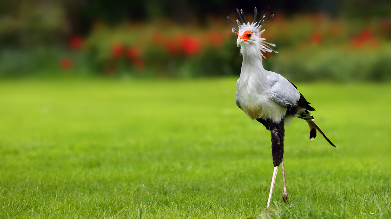 The secretary bird can grow up to five feet in length, and its wings can reach a span of seven feet. This is impressive, but still nowhere near close to the wingspan of the largest and rarest bird in North America. Still, the secretary bird is tall, owning the longest legs of any bird of prey. In fact, secretary birds prefer to hunt by foot, as opposed to scanning for prey from the skies. It uses its powerful legs and sharp talons to stalk its prey amongst the grasslands of Africa. When it hones in on a potential piece of food, it disarms the prey by kicking it powerfully — martial arts style.