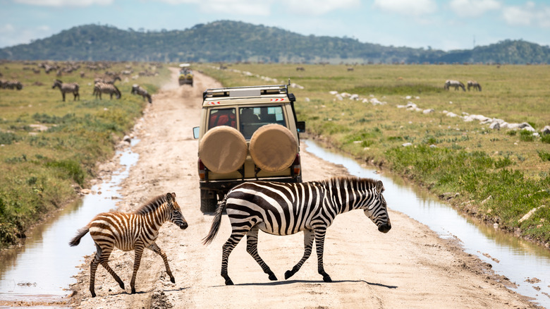 In terms of major attractions, northern Tanzania is pretty on par with Kenya, with opportunities to witness the Big Five at Ngorongoro Crater, which, according to Hayard Experiences, lucky travelers could see "all in one day." Tanzania also offers sight of the beginning of the Great Migration through Serengeti National Park. However, for safari-goers who'd like to avoid peak season, there is another unparalleled experience in the Serengeti during the winter months, from January to March. This is calving season, when visitors can witness the miracle of life as thousands of young animals are born. From Tanzania, you can also gape at Mount Kilimanjaro, albeit, not from the same angle as in Kenya.