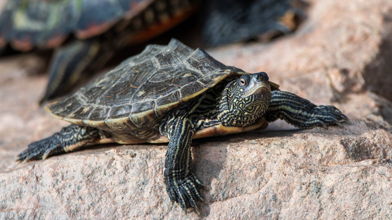 Though not as outwardly aggressive as some of the other turtles on this list, pond sliders are nevertheless a force to be reckoned with. With their vibrantly colorful shells, mottled skin, and small eyes, these creatures are the embodiment of all things turtle. Similar in size to a painted turtle, the pond slider is another popular contender on the pet turtle list. This, unfortunately, is ill-advised.