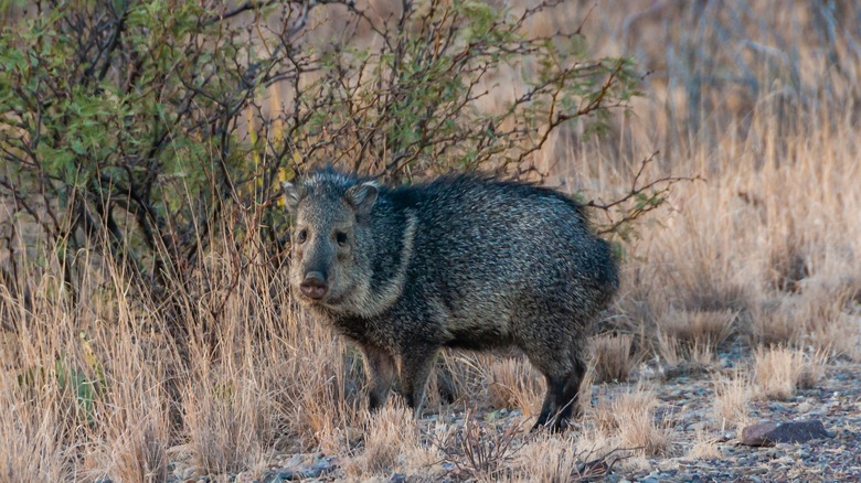 Because they have poor eyesight, javelina often wander closer to humans than other animals found in the wild. This behavior is sometimes mistaken for aggression, but is typically just because they are not aware of the human presence. If a javelina begins to come uncomfortably close, the best thing to do is to make noise by yelling or screaming. Throwing rocks or sticks in their direction (not at) is another effective way to make them flee.