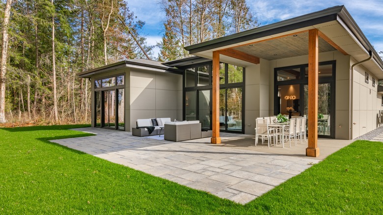 There are a number of pros to adding a patio beyond the fact the home value will increase. Among the main advantages of a patio cited is the fact it affords residents more privacy in a residential setting since it is ground level, making it more difficult for nosy neighbors to catch a peek over the fence. Other pros include patios typically being less expensive than decks, are easy to maintain, and have a long life-span with relatively little maintenance. If building from materials such as blocks, bricks, pavers, or natural stone, it may also be possible to install a patio without a permit.
