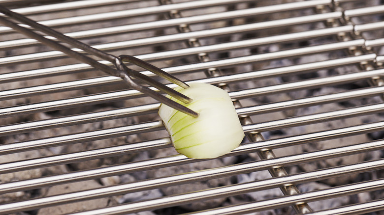 Even a clean grill needs a bit of attention once the fire is lit. Once the coals are close to ready for the meat and the grill is hot, try brushing it with a sliced lemon or onion to remove any remaining bacteria with natural acids.