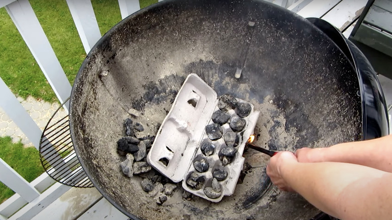 There's nothing better than lighting up the old charcoal grill and cooking some deliciously charred food for your family and friends on a cool evening in early summer. However, there's also nothing worse than prepping your food and building your charcoal pyramid only to discover that you're out of lighter fluid and unable to get your grill started. Now you have two choices — go to the store and buy more or think of another way to light your grill. Luckily, there's an easy trick you can use to get your charcoal going without lighter fluid (which tends to leave residue on food and affect its flavor anyway). The best thing is that, to do it, all you need is something that is probably in your recycle bin right now: a leftover egg carton.